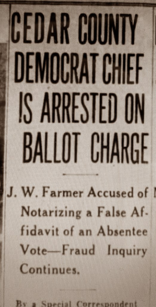 In the end, the entire ballot mess apparently was pointless. Though the 1954 election in Cedar County saw a Democrat win a county-wide office for the first time in 26 years, his margin of victory was easily wide enough that the absentee ballots made no difference.
